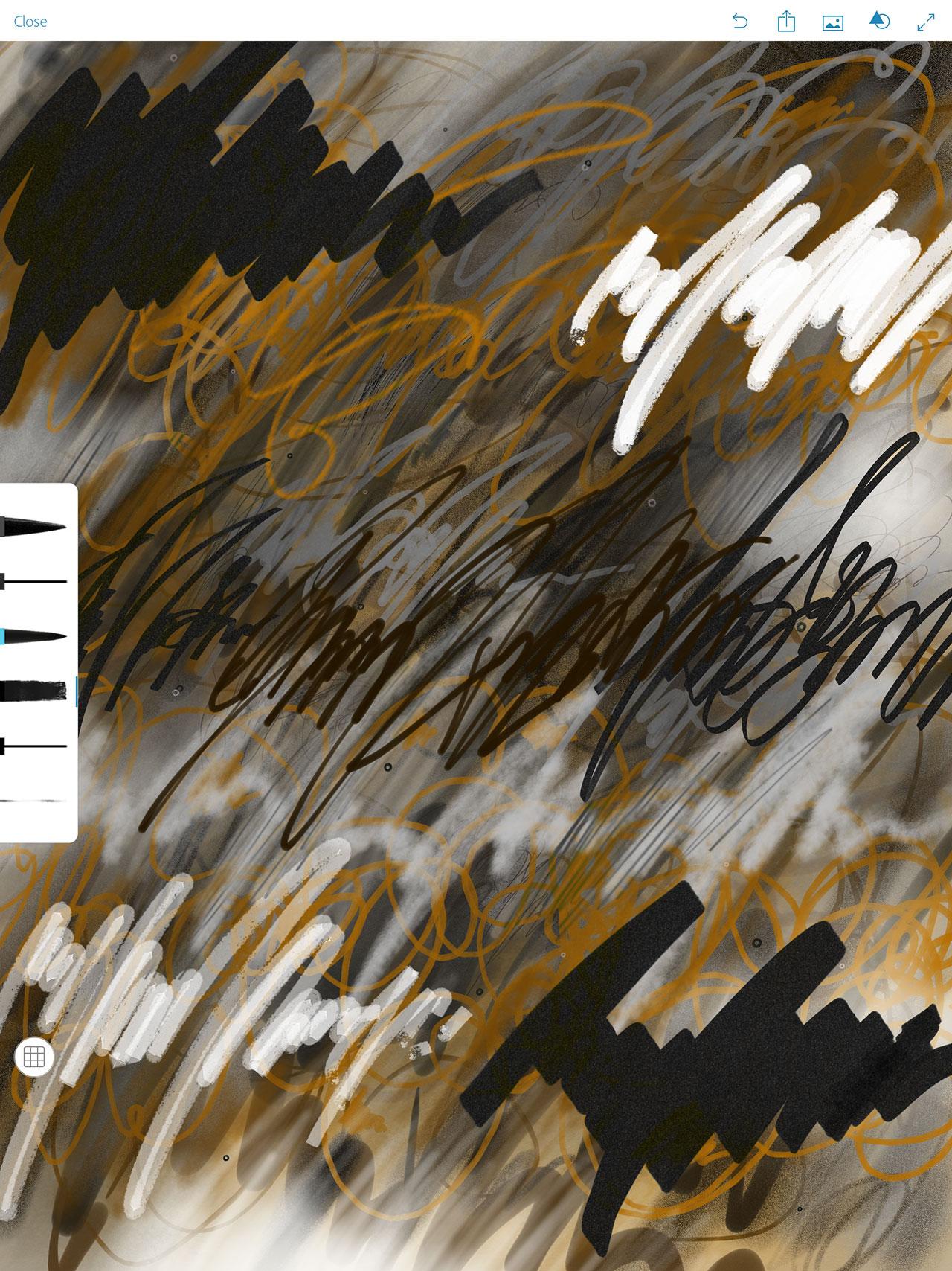 In Adobe Photoshop Sketch, I was able to work with a selection of brushes that emulate the effects of pencils, pens, brushes, and spray paint. Each brush allows you to be flat or blend – each color is able to participate with the rest of the image already on the page or fall flat upon it.