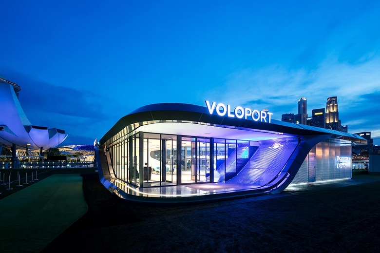 One scenario presented by German manufacturers Volocopter is air taxi ports build around the city. Air taxis would arrive on landing platforms built on VoloPorts, where travellers can get checked in quickly and board their ride.