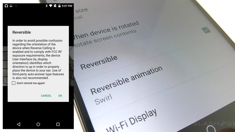 This device has the awesome ability to be used upside-down as well as right-side-up. This means you can – if you've activated the ability in settings – answer your phone with the logo down or up, basically. Most of the phone indicates no up-side or down-side just to emphasize this ability – it's neat.