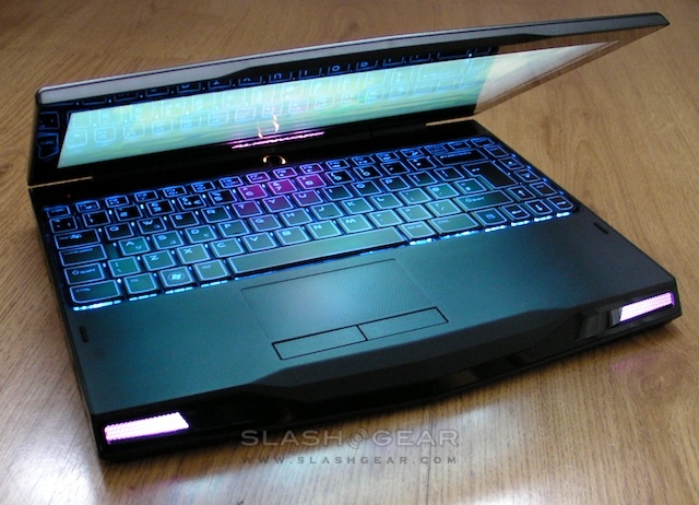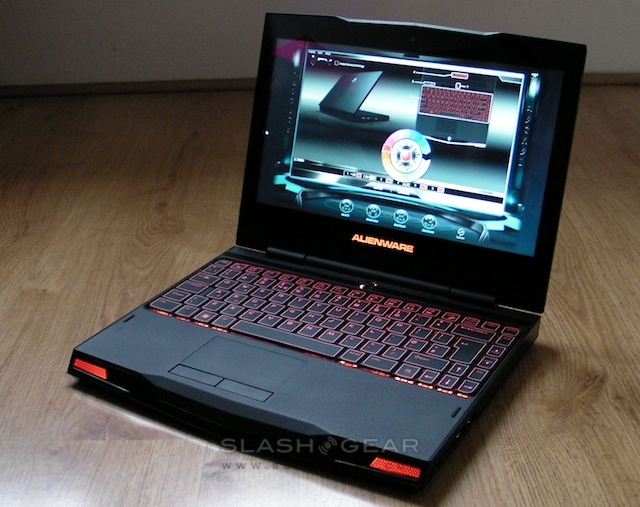 It also – at least the "Alienware" text – serves to fill some of the space left around the display. The 11.6-inch 1366 x 768 panel has a reasonably deep bezel above and underneath, though the TFT LCD itself is bright and crisp. Colors are particularly well saturated, a side-effect of the otherwise moderately frustrating glossy screen coating that can make finding a reflection-free angle a chore. Not such an issue when browsing or writing emails, but dark, moody games can sometimes leave you trying to peer past your own reflection to see what might be lurking round the corner.