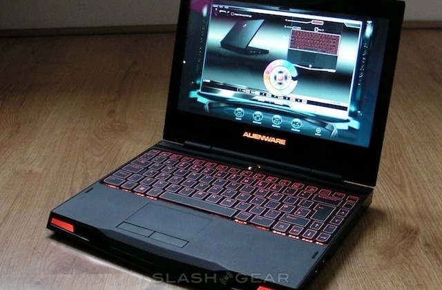It also – at least the "Alienware" text – serves to fill some of the space left around the display. The 11.6-inch 1366 x 768 panel has a reasonably deep bezel above and underneath, though the TFT LCD itself is bright and crisp. Colors are particularly well saturated, a side-effect of the otherwise moderately frustrating glossy screen coating that can make finding a reflection-free angle a chore. Not such an issue when browsing or writing emails, but dark, moody games can sometimes leave you trying to peer past your own reflection to see what might be lurking round the corner.