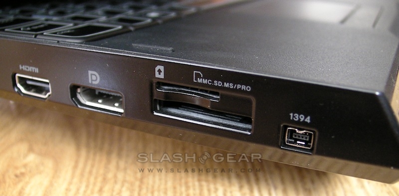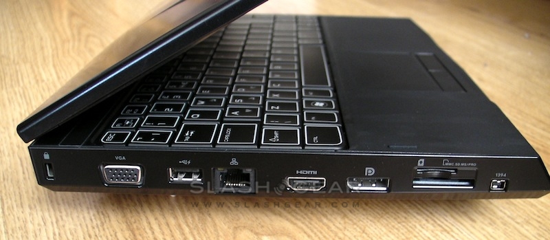 Ports are plentiful, with VGA, HDMI, and DisplayPort for hooking up external screens if the 11.6-inch 1,366 x 768 LED-backlit LCD isn't big enough for you, as well as FireWire, USB and gigabit ethernet. eSATA does seem an odd omission, though, and of course there's no optical drive (though Dell tell us there'll be an optional external drive available as an accessory).