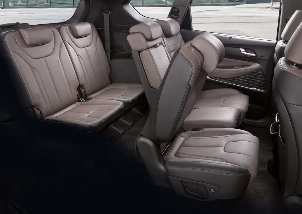 Hyundai is rolling out a new diesel version of the Santa Fe this year with an occasional-use third-row seat and one-touch folding second-row seats, the third row is only offered on the diesel version. 2019 Santa Fes all get the new design with LED daytime running lights and LED headlights.
