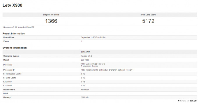 Compared to the LeTV MAX X900, which has the same chip, the score is 1366 and 5172, single and multi core, respectively. The LeTV does have more RAM, 4 GB versus the Huawei's 3 GB, though the benchmark is solely focused on CPU. There is, of course, no definite indication of the Huawei's screen size while the LeTV X900 is already known to have a 2K screen.