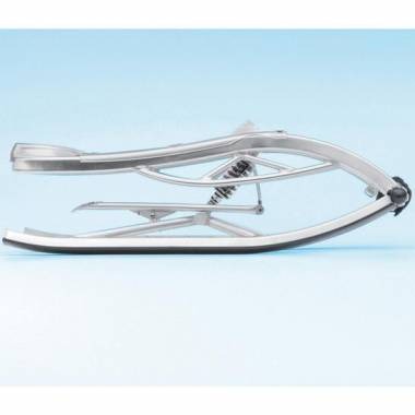 This sled is mad from 6061 aluminum that's buckle resistant (it's the same stuff they make some pretty high end bike frames out of) and a transparent polycarbonate seat (that's the same stuff used for crash helmets). Furthermore, there is a shock, ala a car, that sits underneath the seat, and its adjustable per the terrain and the weight of the rider.