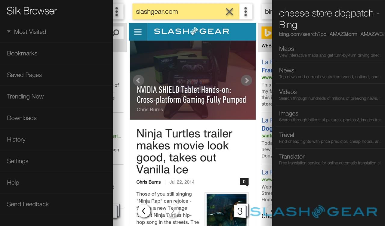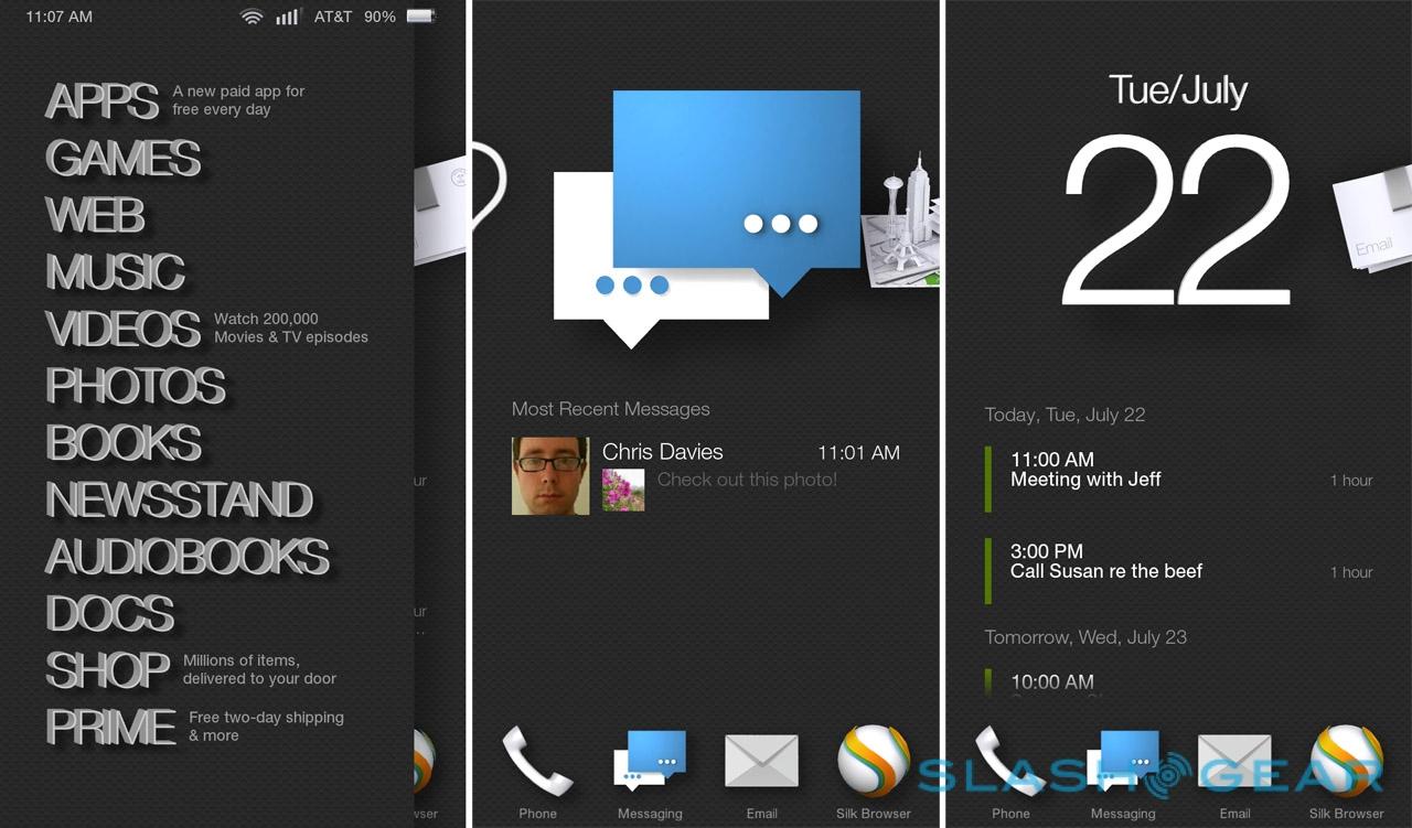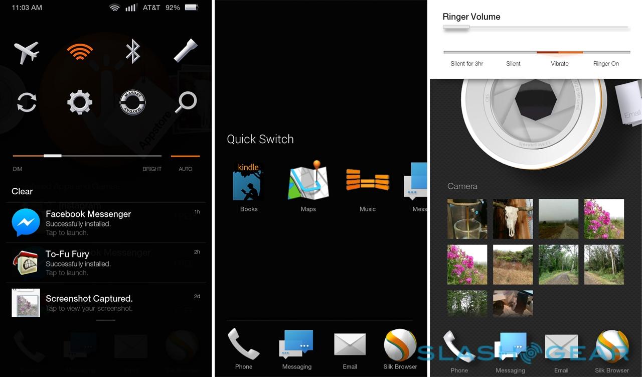 Swiveling the handset slightly pulls down the notification shade, with toggles for wireless, access to Mayday, search, and a flashlight. Double-tapping the home button calls up the Quick Switch menu with icons (though not previews) of the recently used apps, as well as four app shortcuts. Developers will get to take advantage of the gestures themselves, too, if they adopt Amazon's new APIs in the updated SDK.