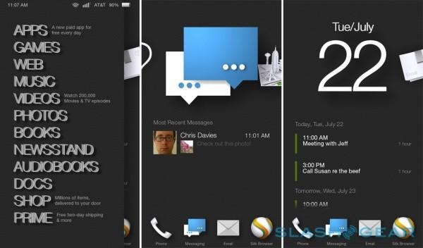 The Fire Phone is the first outing of Fire OS on a smartphone, Amazon taking Android 4.2.2 and reworking it to its own purposes. In addition to a thorough reskinning, Fire OS 3.5 also misses out on any of Google custom apps: there's no Gmail app, no Play Market for app downloads, and no Google Hangouts.