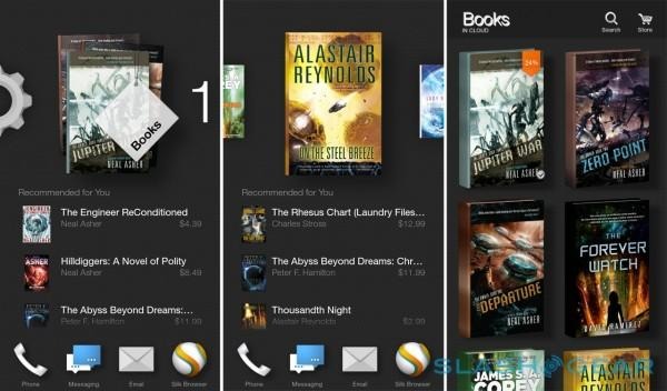 Elsewhere, though, the options vary by the tasks you're trying to carry out. In the maps app, for instance, flicking left or right shows layers and bookmarks; in the Kindle app, you get options to sort the library differently, toggle between content saved locally and that in the cloud, and recommendations for what to read next.