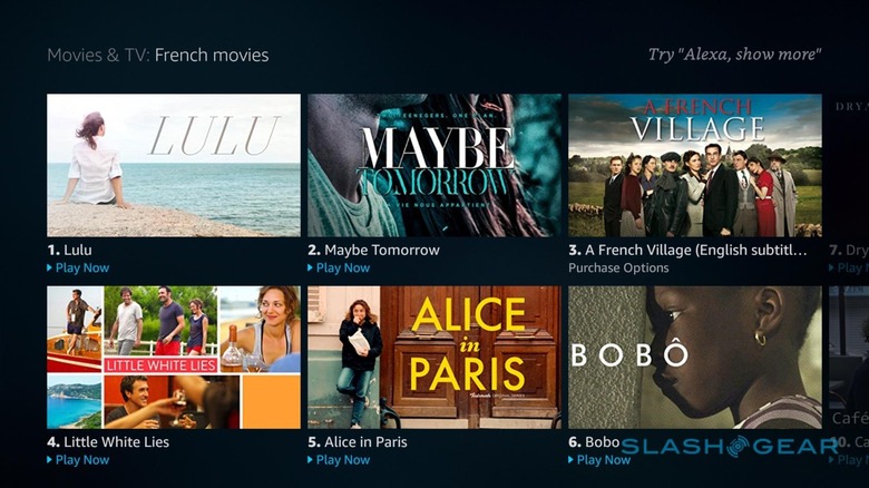 Each result is numbered, and you can say "Alexa, play 3" to make your selection, or ask "Alexa, show more" for the next page. There's support for adding content to your Watchlist by voice, along with navigating through seasons or episodes when you're looking at a TV show. It's not how I'd want to go hunting through a long list of titles, but it's impressively intuitive when you're dealing with just a few pages of results.