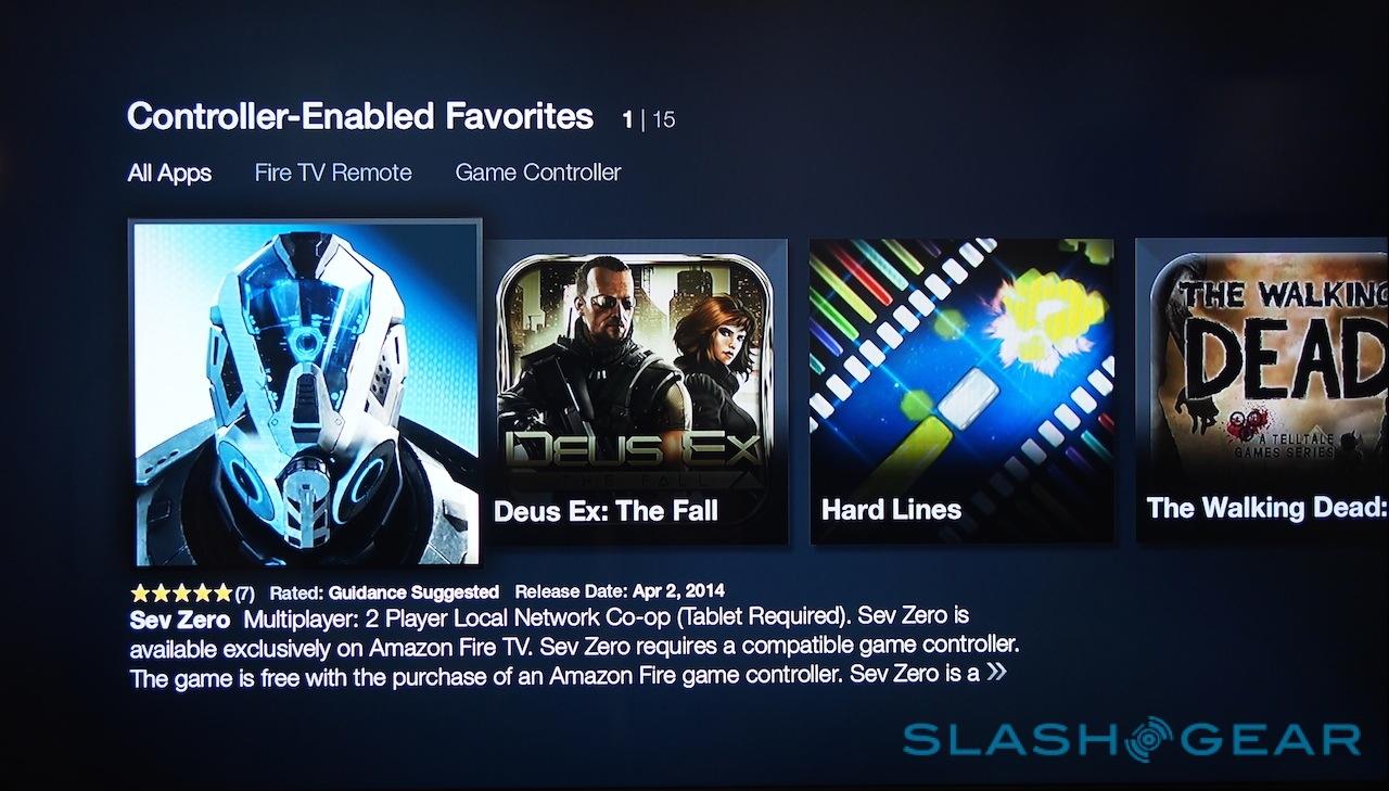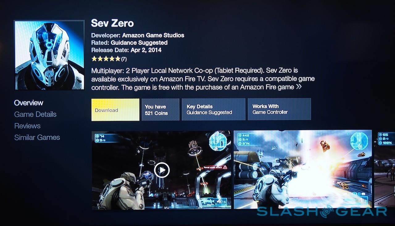 If speed and search are Amazon's first two selling points for Fire TV, then gaming is the third. The company has ambitious plans to make the set-top box a casual console, including using the fruits of its own game development studio at launch, like Sev Zero, effectively a Halo-style first-person shooter.