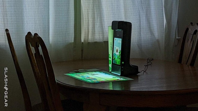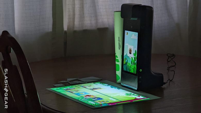The projector, mat, and sensor setup with Amazon Glow is interesting and fun. It's not nearly so perfectly reliable as a real touchscreen, but it does provide an intuitive way to present a sizeable play and activity space that's a sort of half-way point between digital and physical.