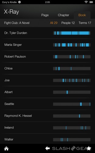 Everything from reading, enjoying a movie, or checking out the latest set of apps has all remained unchanged. Why tweak the reading experience when it's so excellent. What Amazon has done however is improved it with small additions. We now have X-Ray as shown in the video above. X-Ray gives users an in-depth look at the book their engulfed in, details on every character, and where in the book (or movie) they are mentioned. With videos you'll be treated with the same awesome X-Ray feature and it's also integrated with IMDB. From there you can pause the movie you've just rented and look up everything you'd ever like to know about that cute girl in the scene. See other movies she's been in — and of course they'll obviously recommend more films for you to purchase.
