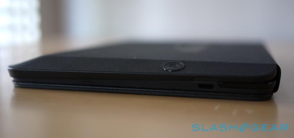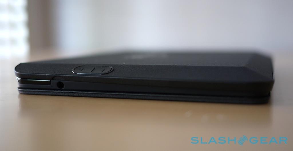 The Fire HDX drops in and is held magnetically in place, with push-through buttons for power and volume. Five score lines on the cover – also magnetically clasped – allows it to concertina into a stand that props up the tablet in both portrait and landscape orientation. Meanwhile, opening the cover automatically powers on the screen, though it doesn't actually unlock it: you still need to swipe across the lock bar for that.