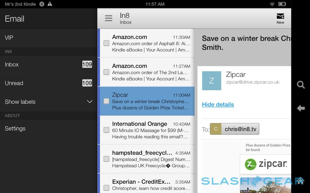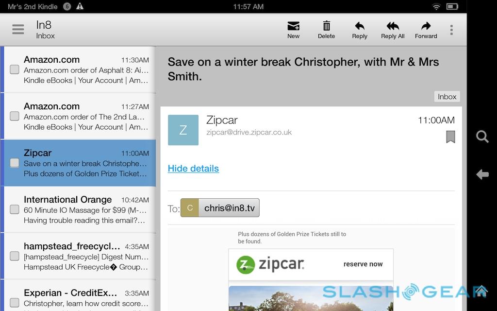 On top of that there's new enterprise support. The email client has been refined, adding preset configurations for the common account types to streamline setup, and adding threaded messaging and synchronization. The Fire HDX offers hardware encryption for those IT departments wanting to make sure user data is locked up tight, and there'll be wireless printing support – if you have a compatible printer – later in the year.
