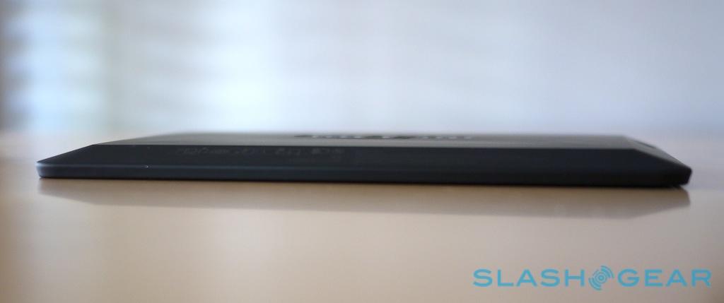 Bevelled edges lead to the equally unassuming bezel, with edge-to-edge glass covering the 7-inch display and front-facing camera. Although the 8.9-inch Kindle Fire HDX will have a rear camera, this smaller model makes do without; Amazon tells us that's because it envisages most users switching to their smartphone for any photography done in earnest.