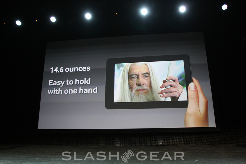 Battery life is expected to be around seven hours of WiFi use from a full charge, and the whole thing weighs a hefty 14.6oz. Although a complimentary subscription to Amazon Prime was initially expected, it seems Amazon has opted not to bundle that in favor of a sub-$200 sticker price; instead you get free Amazon Cloud storage, and the tablet will come pre-registered to your account so that you can get started straight away. Whispersync has been extended to support movies, too, keeping your video content sync'd across devices.