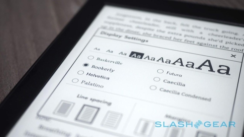 The Kindle Paperwhite provided for my review was loaded with a pre-release version of the firmware with those features activated, though the ereaders on sale right now will have to wait for an update Amazon says is "coming soon." In my experience, the difference in everyday use is minimal, and only certain books will support it; PDF, MOBI, TXT, DOC/DOCX, and the other file types the Paperwhite supports if you plug in via USB and drag them across from your computer don't get the fancy typesetting either.