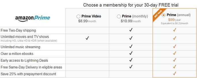 Once they've tried it out, if they like it, they can just keep on paying $8.99 per month. But what are all of these other perks of Prime? It's only going to cost an extra $2 per month (or $1 more per month than they were paying for Netflix) to check out music streaming, and free two-day shipping. That's a pretty easy jump to make. And if they like those perks, they can always save money by paying the $99 per year up front.