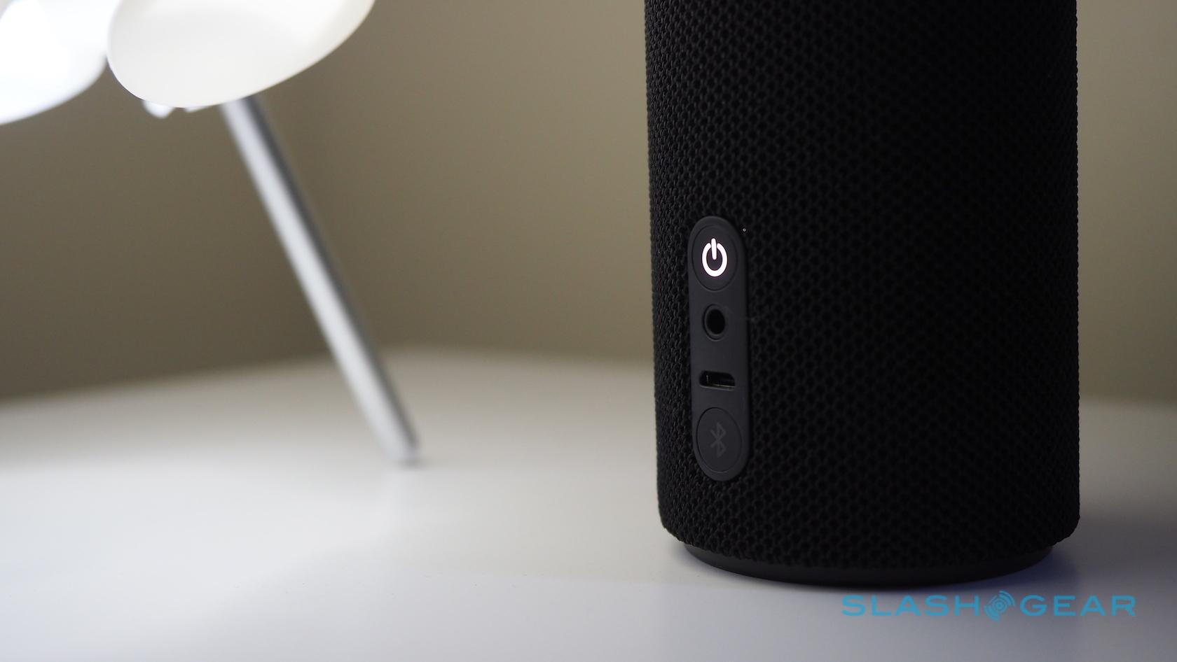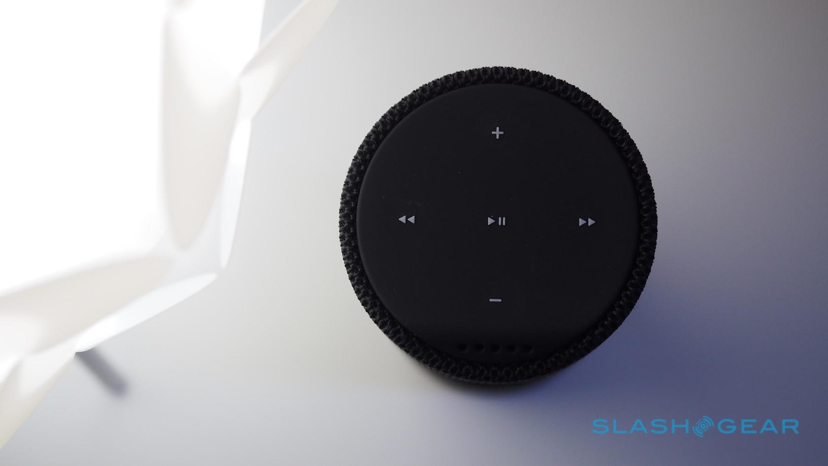 It's not hard to see the family resemblance, both Echo and Tap being sober black columns. In the case of Tap that means a nondescript black cylinder just over six inches tall and weighing just over a pound. The barrel is covered in a tough-feeling fabric, while the top and bottom are rubber; unfortunately, Tap isn't waterproof.