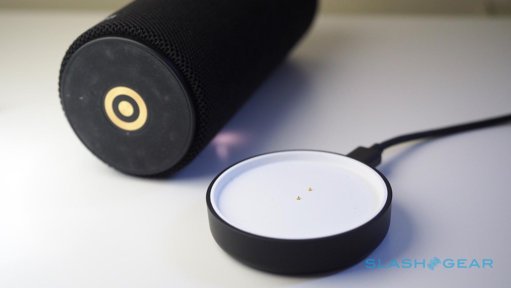 The charging cradle is neat, a low-profile disc on which Tap sits, but it uses old-school pins to connect rather than wireless charging. Alternatively you can plug a microUSB cable in direct. Amazon says a full charge is good for up to nine hours of music playback, though that pales next to the fifteen you'll get from the UE BOOM 2.
