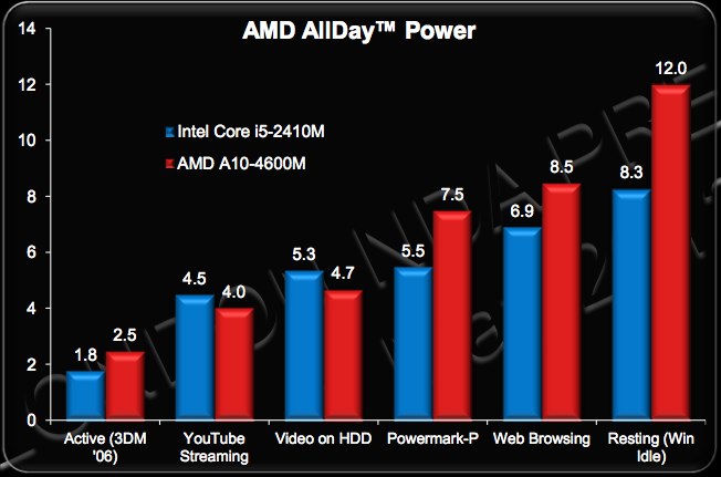 Despite the performance increases, AMD also expects markedly improved battery life for Trinity-based notebooks. Up to 8.5hrs browsing is on the cards, or 4.7hrs of local video playback or 4hrs of YouTube streaming, from the average portable.