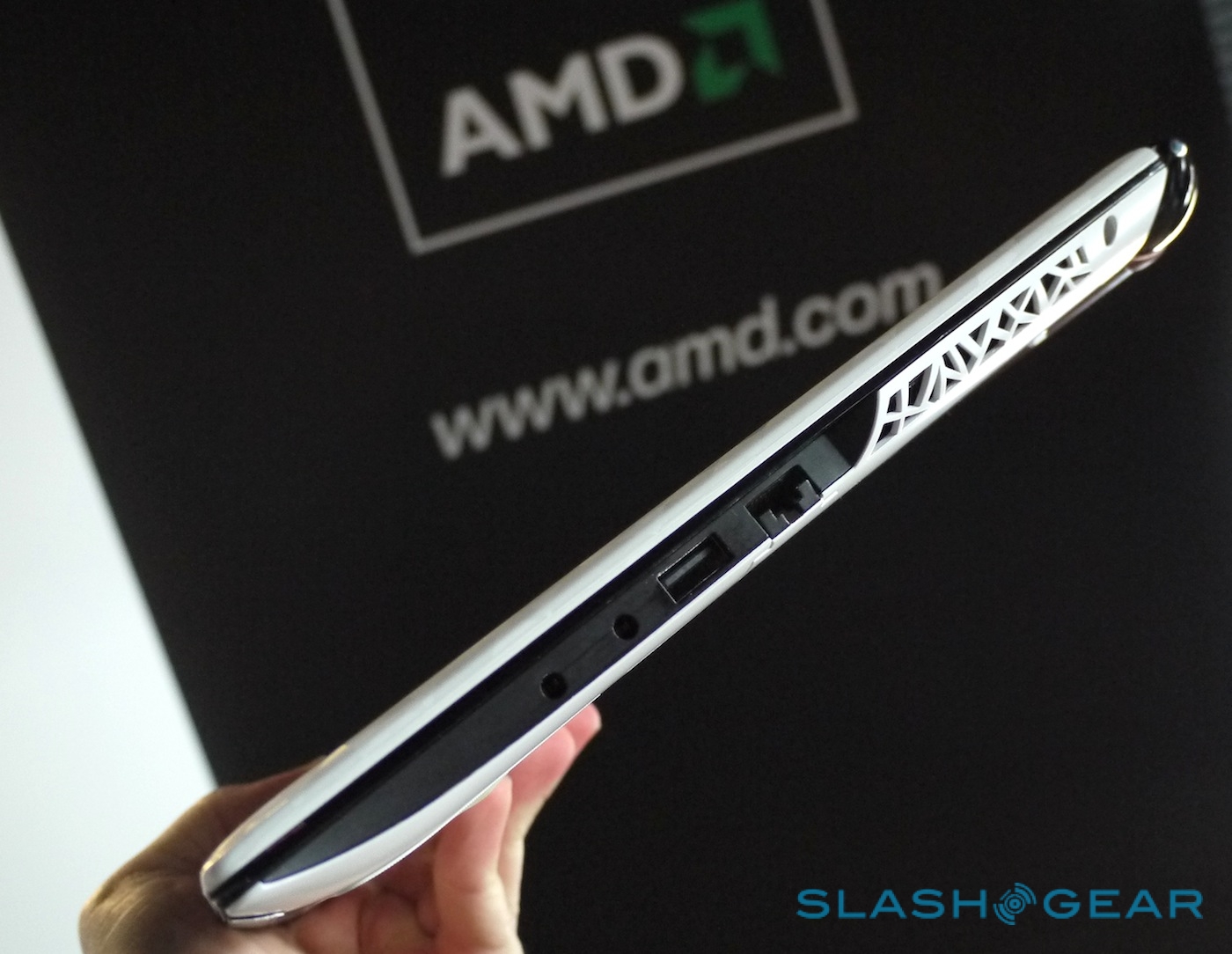 It's Trinity-based ultrathins that will undoubtedly catch the most attention, though, going up directly against Intel's pet ultrabook project. AMD showed us a Compal ultrathin reference design, as thin as its ultrabook rivals, though certainly not yet ready for primetime with its chassis flex and plasticky build. Nonetheless, it was capable of outputting 1080p Full HD video to two separate external displays while simultaneously running its own LCD.