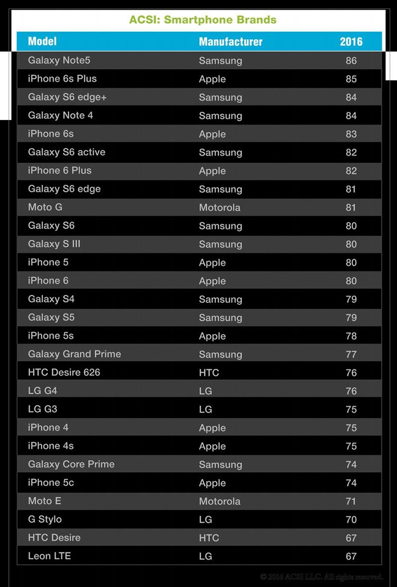 Today the ACSI Telecommunications Report 2016 has revealed consumer satisfaction in smartphones in the United States. This American Customer Satisfaction Index (ACSI) report is run on "interviews with roughly 70,000 customers annually", asking questions about customer satisfaction in brands including Apple, Motorola, Samsung, LG, HTC, and more. Measures are reported on a scale of 0 to 100, 100 being the most satisfied. You might be surprised who holds the number 4 spot – it's not a phone released this year, nor last year, believe it or not.
