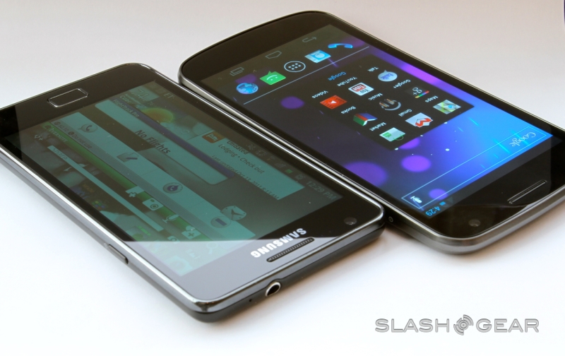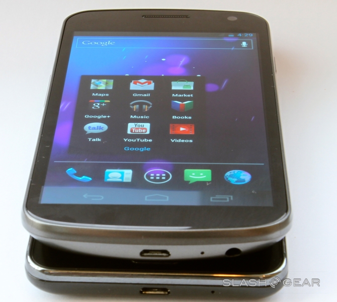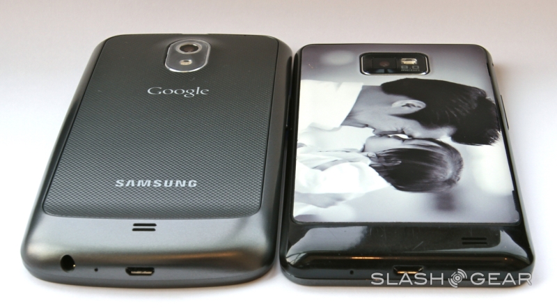 Samsung presents this device as the next step in the evolution of the ideal smartphone, but continues still to lead their pack of Android devices with the Galaxy S II. The original Samsung Galaxy S II appears both in the image below this paragraph and in the gallery below photographed next to the Galaxy Nexus in a variety of ways. The Galaxy S II still runs Android 2.3 Gingerbread, but certainly won't be far from an update once Ice Cream Sandwich is released into the wild in late 2011/early 2012. As for the innards, both devices run a dual-core 1.2GHz processor, the GSII running an Exynos (Samsung) processor while the Galaxy Nexus runs an OMAP4 (Texas Instrument) processor. The display size on the Galaxy Nexus is 4.65-inches at 1280 x 720 pixels and is what Samsung calls a Super AMOLED HD, while the Galaxy S II has a 4.27-inch display at 400 x 800 pixels and is a Super AMOLED PLUS. You'll have to decide for yourself which seems the most well suiting.