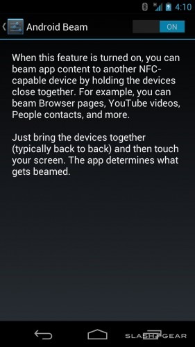 Just as it was with Android 4.0, here in Android 4.1 you're able to beam photos, items in certain apps, and contacts with a touch. This update ads a collection of sharing abilities such as Simple Secure Paring for connecting to Bluetooth devices as well as the sharing of YouTube videos, directions, and videos.