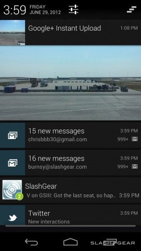 Several apps either are or are about to be updated to work with this new notifications pull-down menu – you'll notice right away that each new screenshot you take will be previewed in part with a bit of a chopped-off segment of its full self, for example. Each update is also expandable based on its content, with your Gmail updates showing snippets of your messages instead of just showing that you've a certain number of messages in your inbox.