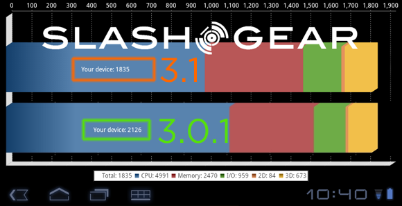 This update is said to be a performance increase of some sort or another, but if we're going by the numbers, it doesn't seem to add up. Head back to our XOOM Review or our Honeycomb 3.0 Review for more information on how this system acts before it's upgraded.