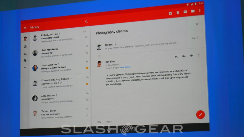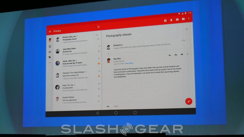 The preview of Material Design goes live today, giving developers an opportunity to get up to speed with the new interface style, and Google gave a preview of the updated version of Gmail for Android phones. All of Google's own apps, including those for Chrome OS, will be updated to Material Design over the coming months.