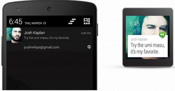 Accordingly, one's app notifications will appear on Android wearables, and via Android Wear APIs, developers can "customize and extend" the notifications, such as adding additional pages to the notification for detailed information, allowing the wearer to respond to notifications with voice or touch, and stacking notifications, which aggregates them in a way obviously convenient for the small face of a smartwatch. In that same vein, existing Android APIs can be used to trigger contextual notifications — arguably one of the most important aspects of a wearable device.