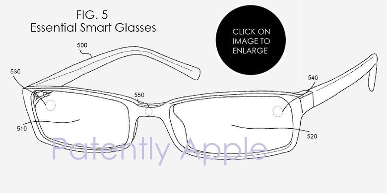 Indeed, the image accompanying this patent – as uncovered by Patently Apple – shows off a pair of glasses more traditional in their design. At the moment, we only have a basic understanding of how these glasses will work, with a "dual-mode display" embedded in the lenses, and quite a few cameras pointing every which way.