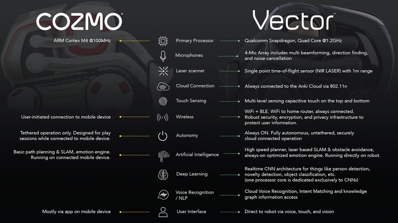 In the video below you'll see a bit more about Vector as explained by its creators. This robot rolls with a Qualcomm APQ8009 processor – a processor you've likely never heard about before now. It's similar to a processor like you'd find on a smartphone, but here it's made for and optimized for this smart robotic creature specifically.