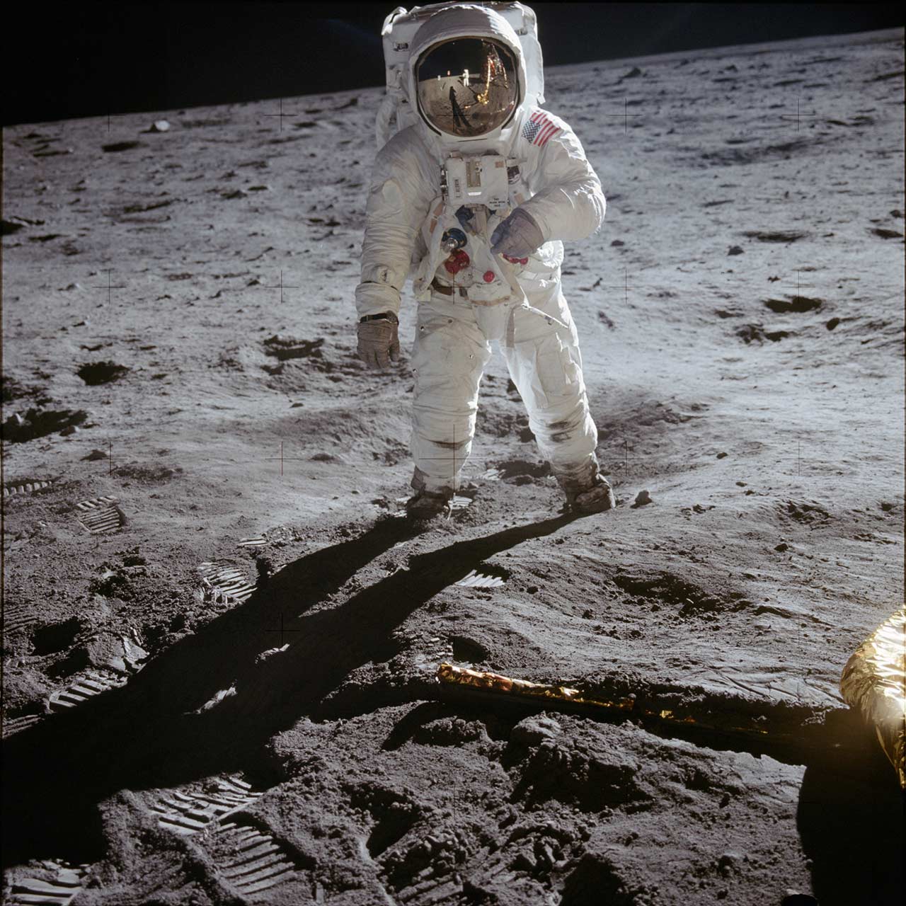Upon landing the Eagle during the moon landing mission, Apollo 11, the team selected a silver Hasselblad Data Camera (HDC) with Réseau plate, fitted with a Zeiss Biogon 60mm ƒ/5.6 lens to photograph the surface. This camera was attached to Neil Armstrong's space suit. A black Hasselblad Electric Camera (HEC) with a Zeiss Planar 80mm ƒ/2,8 lens was used to photograph images from within the Eagle lunar module.