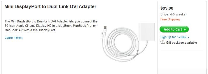 The new Apple MacBook and MacBook Pro are just crying out to be used with the equally new 24-inch Cinema Display, but what if you're perfectly happy (and who wouldn't be?) with your existing 30-inch Cinema Display? Apple has switched to Mini DisplayPort on their latest computing hardware, but the older LCD uses a DVI port. No problem, Apple has your back... as long as you give them $99 for the adapter cable.