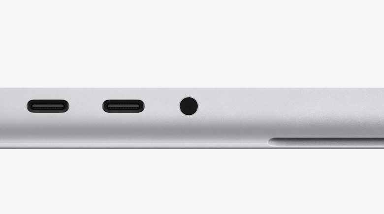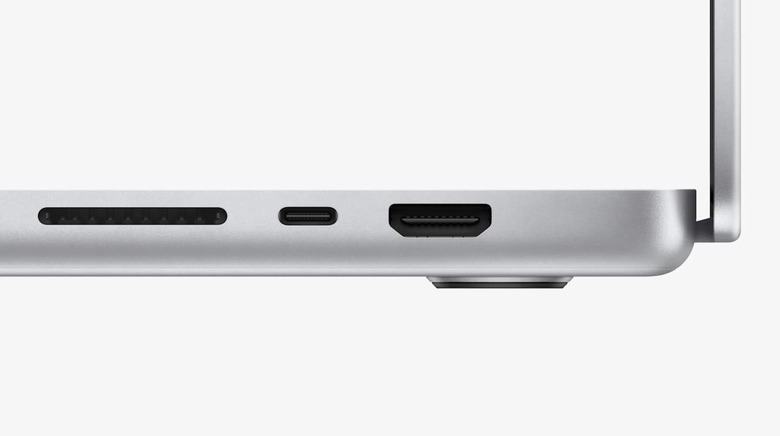The ports on the new MacBook Pro may not be able to challenge the port-heavy laptops of yesteryear, but there's still some good stuff here. On the right side of the device, we'll see an HDMI port, a Thunderbolt 4 port, and an SDXC card slot. In addition, we get two more Thunderbolt 4 ports and a 3.5mm headphone jack that supports high-impedance headphones on the left side. While the headphone jack departed iPhones years ago, it looks like we're still getting one on the 2021 MacBook Pro.