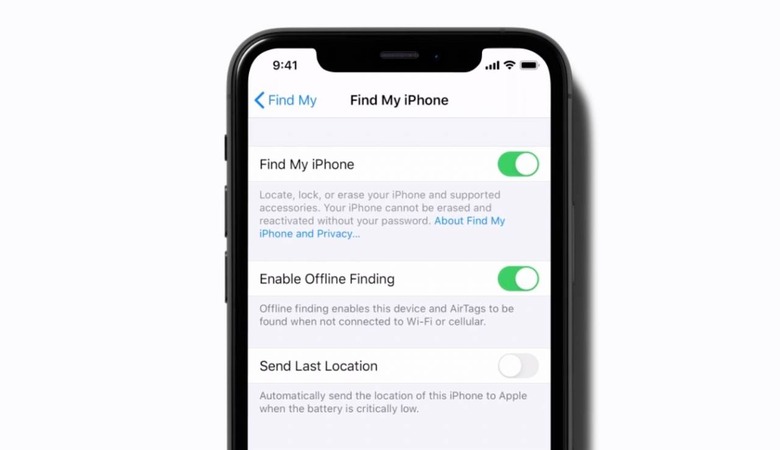 That's not new, but the mention of AirTags there is. "Offline finding enables this device and AirTags to be found when not connected to WiFi or cellular" the option reads. In the current public release of iOS 13.4, the message is the slightly more vague "Offline finding enables your devices to be found when not connected to WiFi or cellular."