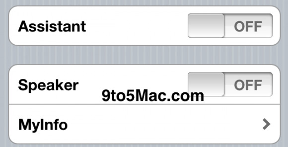 Apple's long-anticipated voice control system for the iPhone and iPad could make its debut in iOS 5 or as an iPhone 5 exclusive later this year, if a leaked screenshot confirming an "Assistant" feature in the platform's settings is anything to go by. According to that image, passed to 9 to 5 Mac by a trusted source, and the iOS 5 SDK itself, Assistant will use a combination of on-device and cloud processing to recognize natural-speech instructions – such as "Find me more music by U2" – and be able to use various data sources to present the best set of results.