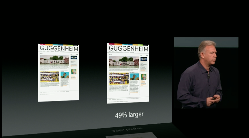 As you see above, they were quick to mention the bezel. Showing the iPad mini has a much smaller bezel while still having a larger display and staying thinner. Pretty impressive right? The image above shows Google's Nexus 7 without the on-screen keys, without the browser tabs up top, and as an end result you get a much smaller display for actually viewing and enjoying HD content. From browsing the web, enjoying movies, playing games and more the iPad mini and its 7.9-inch display just does more — according to Apple.