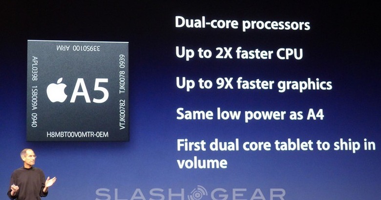 The existing iPhone 4 and iPad both use Apple's A4 1GHz chipset, a single-core SoC co-developed with Samsung (and which the Korean company went on to use as the Hummingbird CPU in the Galaxy Tab slate and Galaxy S smartphone). Even if Apple shuns Samsung for the A5, the company is still reportedly dependent on its rival's flash memory and displays.