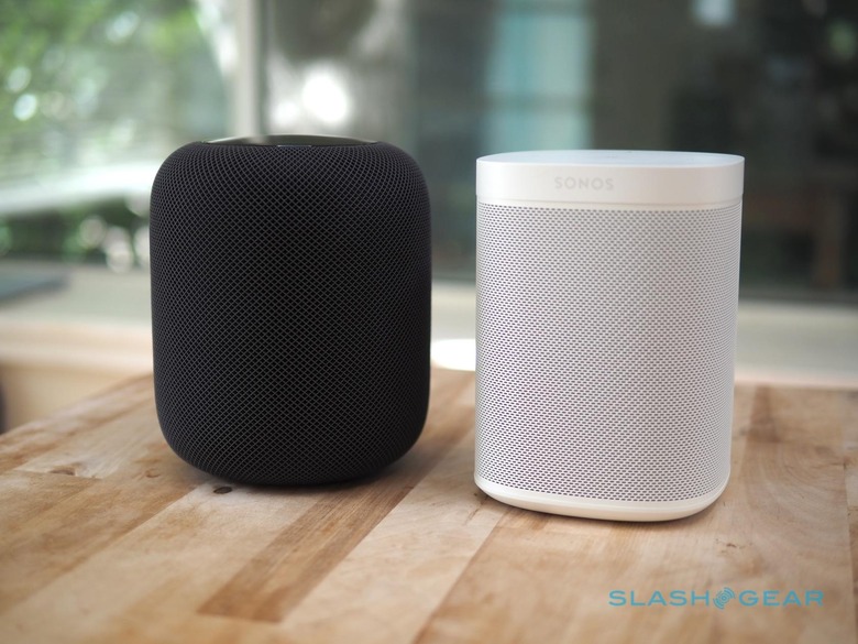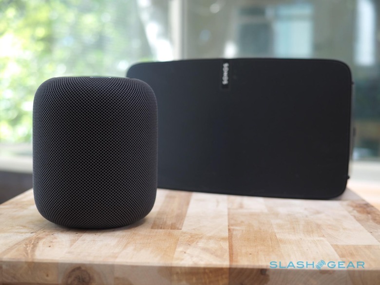 The $349 HomePod slides into the gap between Sonos' $249 PLAY:3 and $499 PLAY:5. Arguably its most obvious comparison, however, is the $199 Sonos One; that offers native Alexa voice control, though the company's other speakers can wirelessly connect to an Echo to be similarly controlled by spoken command, albeit not for Apple Music. A current bundle offer, meanwhile, includes two Sonos One units for a HomePod-matching $349.