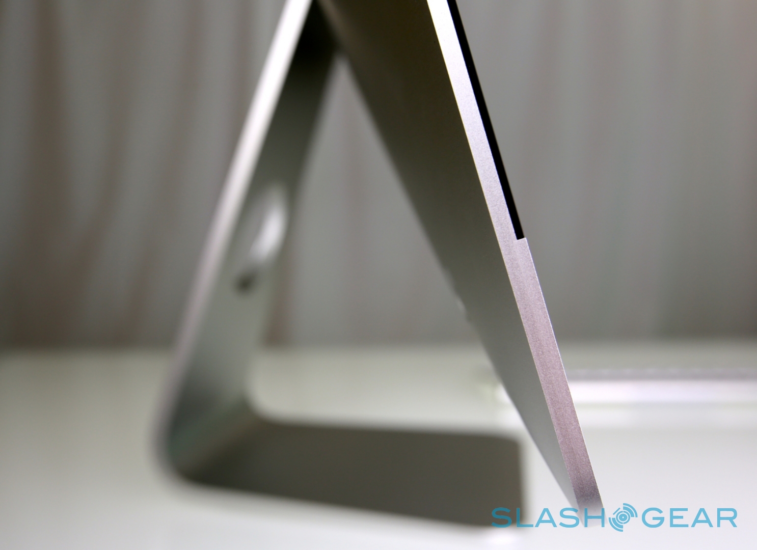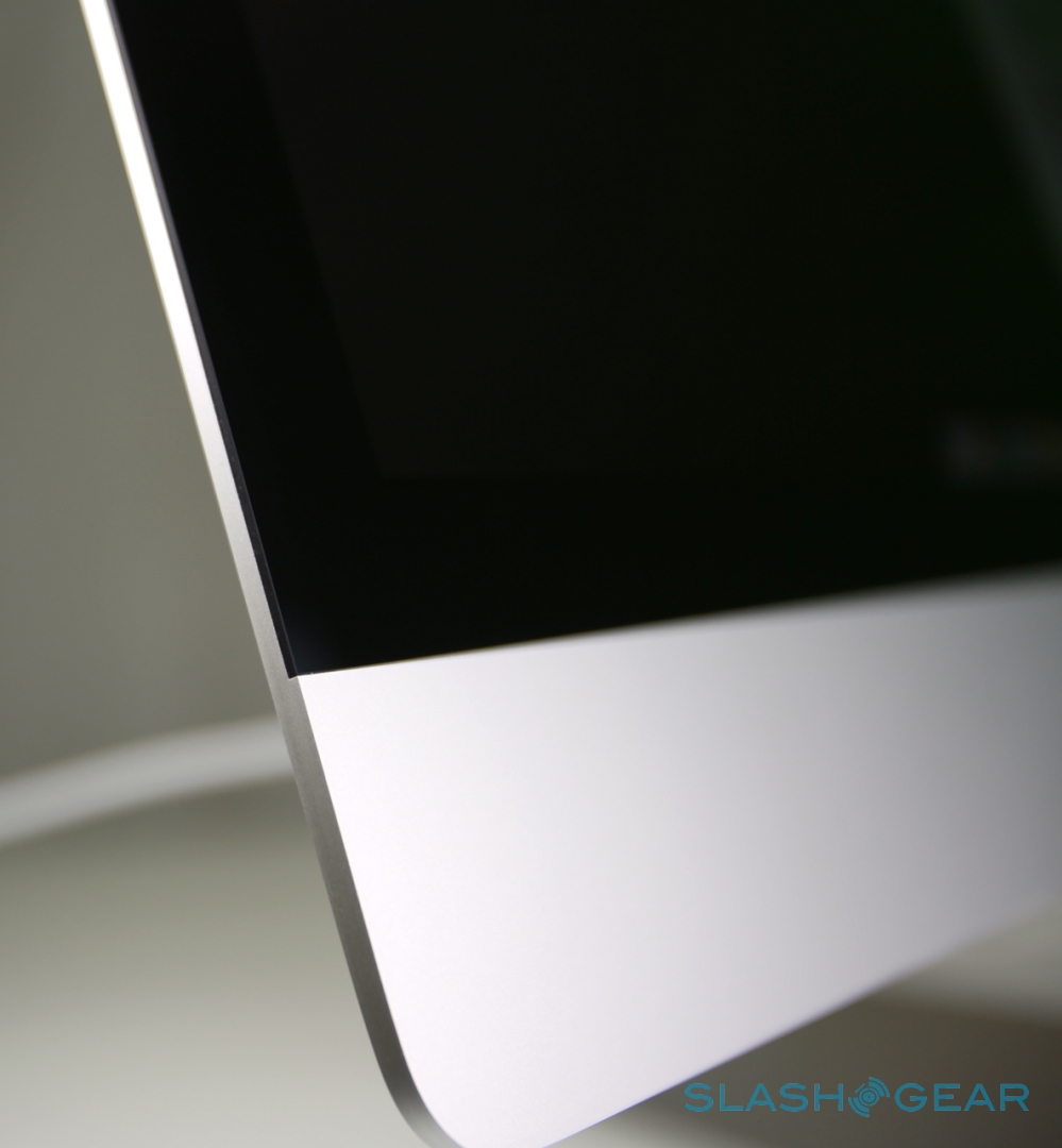There's a mixture of engineering and design magic that goes into making the 2012 iMac look so much slimmer than its predecessors. While the last-gen model had blunt edges, Apple has taken a leaf from the MacBook aesthetic and pared the edges down to a narrow taper of only 5mm: although the back actually bows out to accommodate the electronics, a casual glance makes it look like a significantly narrower computer than before.