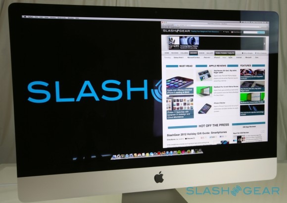 Apple quotes a 75-percent reduction in reflection, helped by the so-called plasma deposition system which coats the glass layers with more precise coatings of the same materials used to cut glare on camera lenses and fighter pilots' helmets. It's a tough thing to measure exactly in a real-world setting, though there's an obvious cut in reflections (see image above where a flash from camera is minimized) when you set old and new next to each other. We spent far less time tweaking the degree of tilt of the new iMac versus the old to find a position where artificial lighting and the sun didn't prove frustrating, and even once we'd set up both to our liking, text and graphics simply look better on the 2012 model.