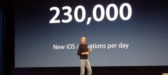 First, there have been 120 million iOS-based devices launched since the debut of the original iPhone. As far as activations go, there are roughly 230,000 activations of an iOS-based device every day. As for the App Store? There's been about 6.5 billion downloads from the digital retail location, with about 200 applications downloaded every second. In total, there's over 250,000 apps in the App Store, and 25,000 in the iPad's App Store.