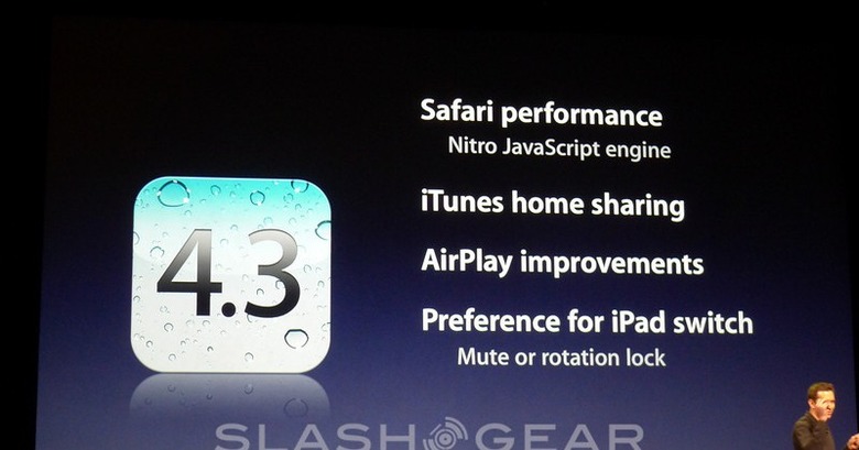 iOS 4.3 will be available to iPad, iPhone and iPod touch users as a free software update on Friday, March 11. iOS 4.3 is compatible with iPad, iPad 2, iPhone 3GS, iPhone 4 (GSM model), plus third and fourth generation iPod touch. For more information please visit www.apple.com.