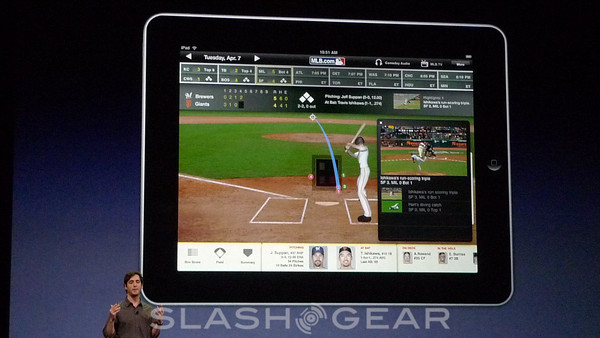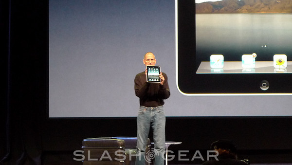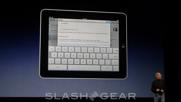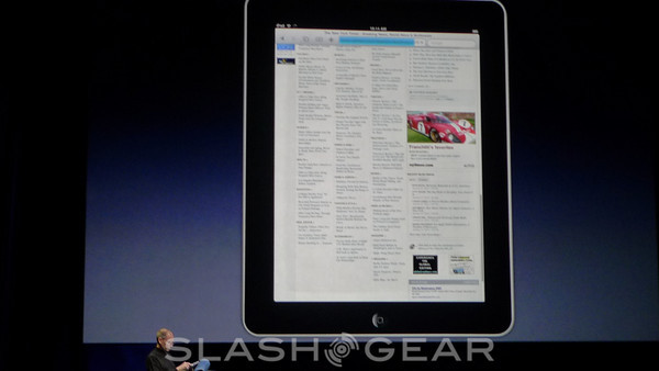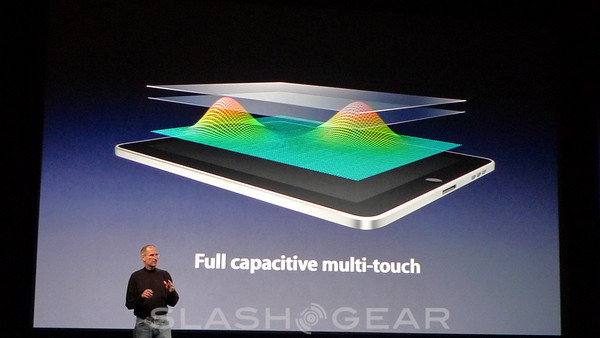 Apple have unveiled the iPad, their long-awaited and much-rumored tablet. A half-inch thick slate, the iPad has a 9.7-inch LCD IPS 1024 x 768 display with multitouch, , WiFi 802.11n and – optionally – integrated 3G, the iPad is based on a new 1GHz Apple A4 of the company's own design. Onboard storage ranges from 16GB to 64GB, and the whole thing runs the iPhone OS with a new, custom UI. Best of all, pricing will start at $499 when the Apple iPad begins shipping in around 60 days time, with $130 on top for adding integrated 3G. More details after the cut.
