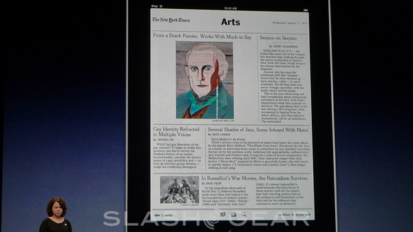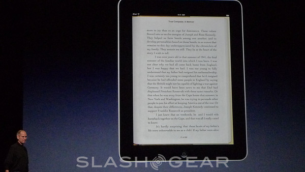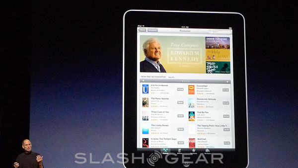 Fresh to the iPad is a new ebook reading app, iBooks, complete with an ebook store for wireless downloads. Apple have partnered with Penguin, HarperCollins, Simon & Schuster, MacMillan and Hachett Book Group, and ebooks can include color and B&W content, together with images and video. Samples and reviews will be available, and there are page animations for reading. Fonts are interchangeable and resizable, and there will be a range of fiction and textbook content to purchase at launch.