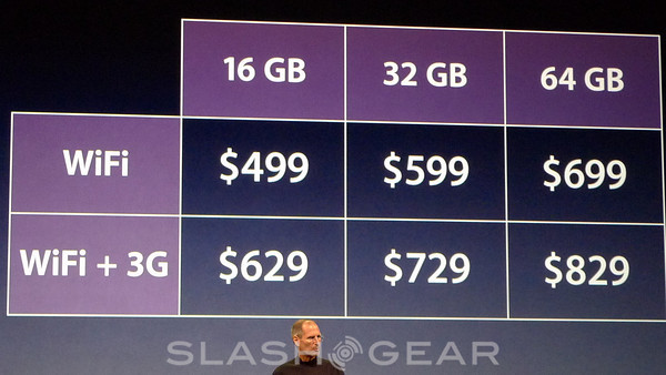 There will be three versions of iPad, a 16GB model for $499, a 32GB model for $599 and a 64GB model for $699. Adding 3G will be $130 on top of that (the 3G models won't ship for 90 days or so), and Apple will offer two data plans – $14.99 for 250MB or $29.99 for unlimited data – which will be pre-paid, managed from the iPad itself and contract-free. As with the iPhone 3GS, Apple have partnered with AT&T for their data service, and subscribers will also get unlimited AT&T WiFi hotspot access included. The 3G modem itself will be unlocked and use a GSM "micro-SIM" for international use, which could present issues as relatively few carriers currently offer them; official international data plans are expected to be finalized in the June/July timeframe.
